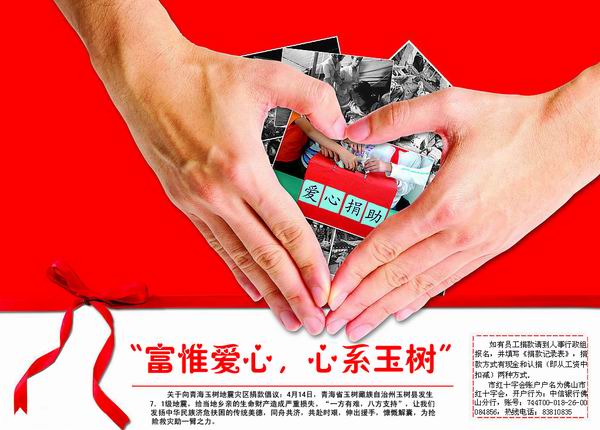 為支援青海玉樹地震地區(qū)的災(zāi)后重建工作,幫助災(zāi)區(qū)群眾盡快恢復(fù)正常生產(chǎn)生活,佛山富惟日前開展以“捐出一份愛心,重建一個家園”為主題的愛心捐款活動。