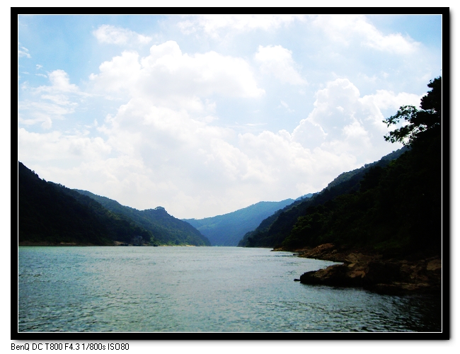 我們各自分好小組,穿好救生衣,戴上安全頭盔,拿著水瓢上船的時候,放眼望去,都是綠油油的頭(盔),紅彤彤的戰(zhàn)衣(救生衣),手持水瓢,活像四五十年代的紅色游擊隊。然后,驚險而又刺激的旅程就開始了。全程2.8公里多,有20多個落差位的水道上,都是不絕于耳的“哇——哇——”叫聲,其叫聲的凄慘程度不亞于鐵達尼號上的落水者。而在水面平靜的地方,就成了水槍、水瓢、甚至頭盔的“用武之地”。大家充分利用了水瓢的“靈活性”、水槍的“遠程性”、頭盔的大面積“殺傷性”,興高采烈地打起了水戰(zhàn)。其混亂激烈程度不亞于美國攻打伊拉克首都巴格達時的情形。一路上,尖叫、顛簸,然后馬上進入作戰(zhàn)狀態(tài),混戰(zhàn)后,又再重新盡情地尖叫、發(fā)泄。直到最后達到終點時,個個都已經渾身濕透,筋疲力盡,但卻又意猶未盡,直到在回來的路上,還在為你應如何如何,我該如何如何爭論不休。